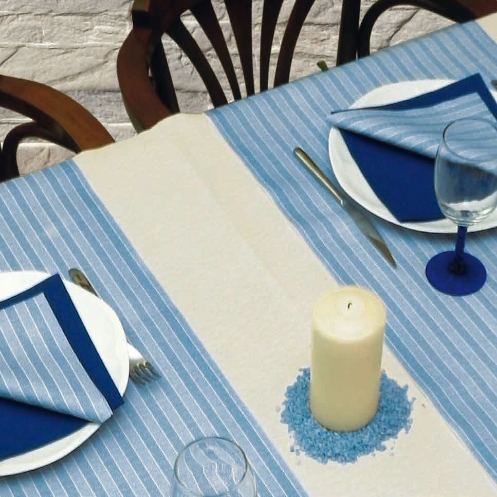 Delicate decorazioni rigate su eleganti tovaglie e runner arrederanno con gusto le vostre tavole e il vostro locale.