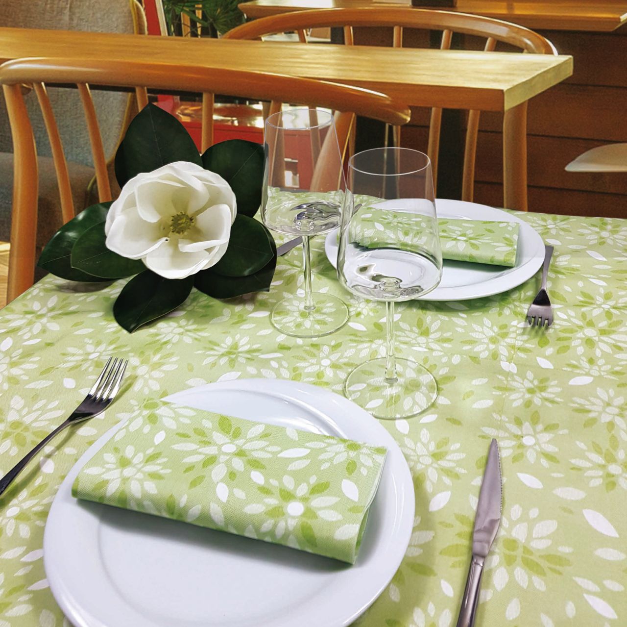 La fantasia Flo è, come dice il nome, ispirata a un tema floreale, perfetto per agriturismi o tavoli all’aperto o per qualunque luogo che vuole trasmettere l’idea di “Natura”.