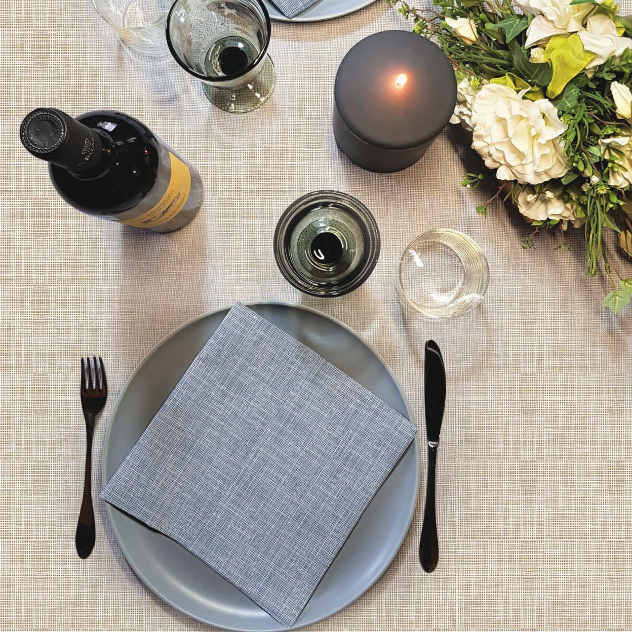 Bellissima geometria con finissime righe incrociate perpendicolarmente, perfetta per tavole eleganti e locali trendy.