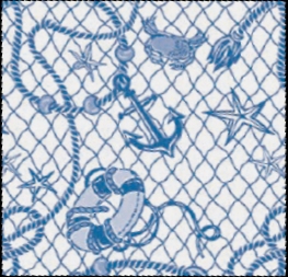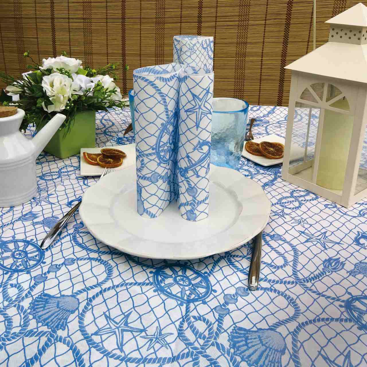 Tovaglia monouso Rete: un’altra bellissima fantasia a tema marinaresco, che raffigura una rete da pescatore e altri disegni a tema.