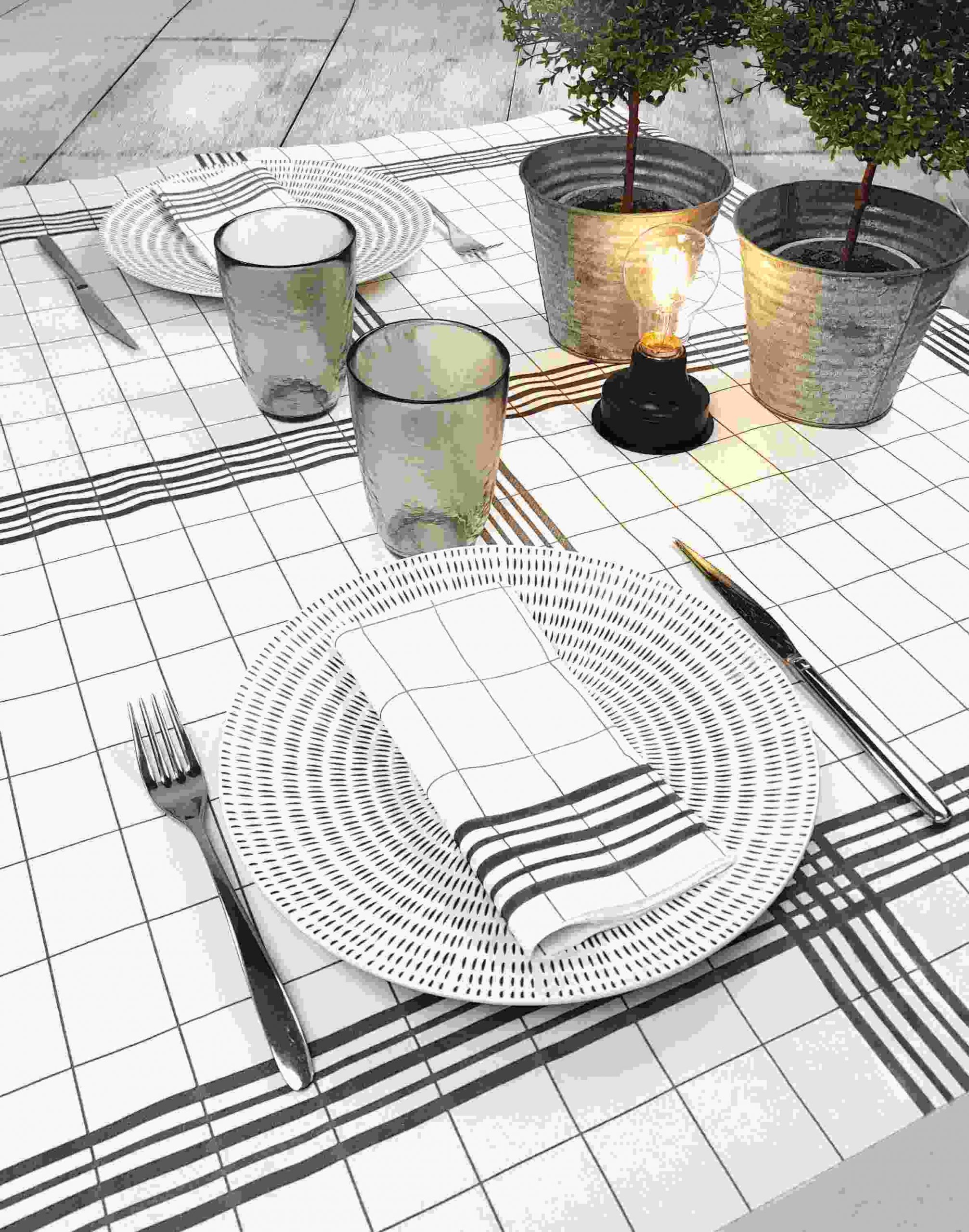 Tovaglia monouso Square: bellissima geometria che alterna righe sottili e righe più spesse che rendono l’aspetto della tua tavola molto pulito e ordinato.
