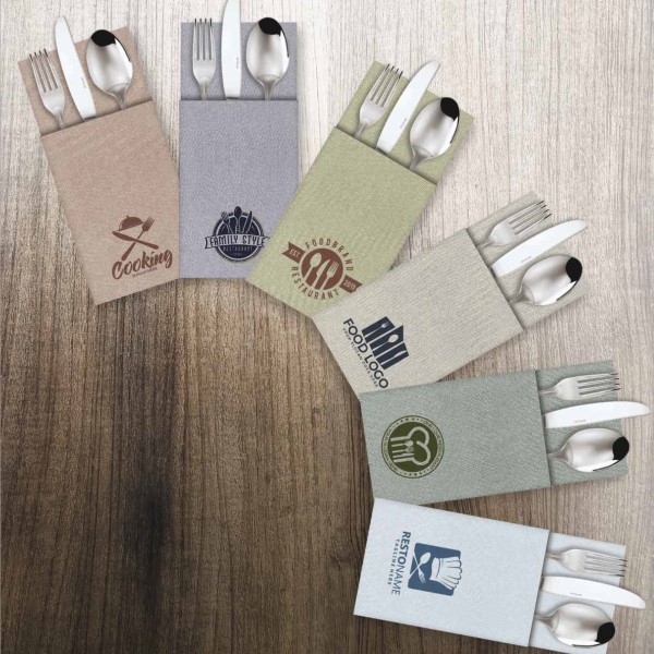 Grazie al servizio di personalizzazione, potrai avere prodotti unici con il tuo nome e marchio stampati, ad esempio pocket porta-posate o tovaglioli o altro.